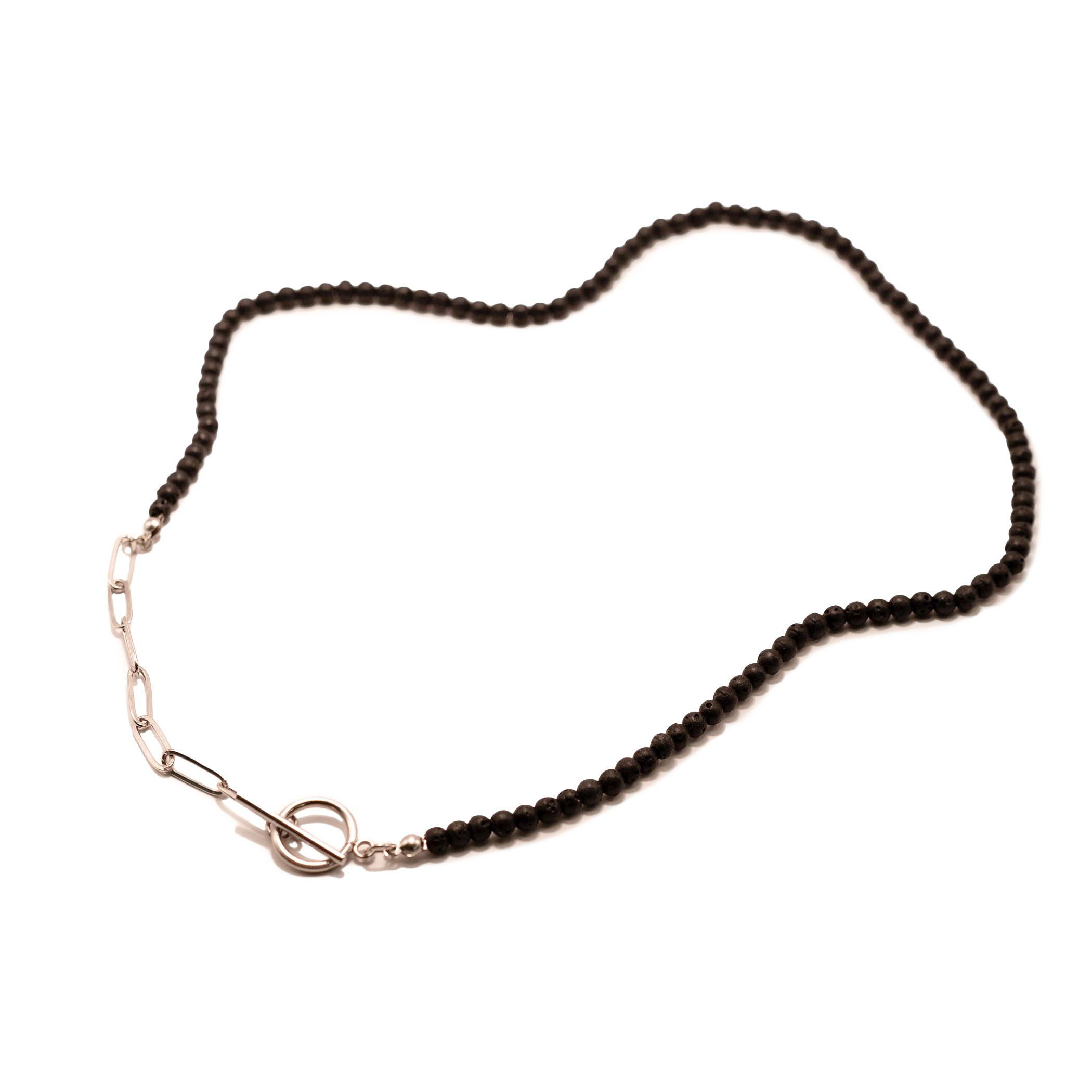 שרשרת אבנים טבעית מזן פחם, עשויה עם חומרים עמידים אשר אפשר להכנס איתם לנוזל ויש עלייה אחריות מלאה.